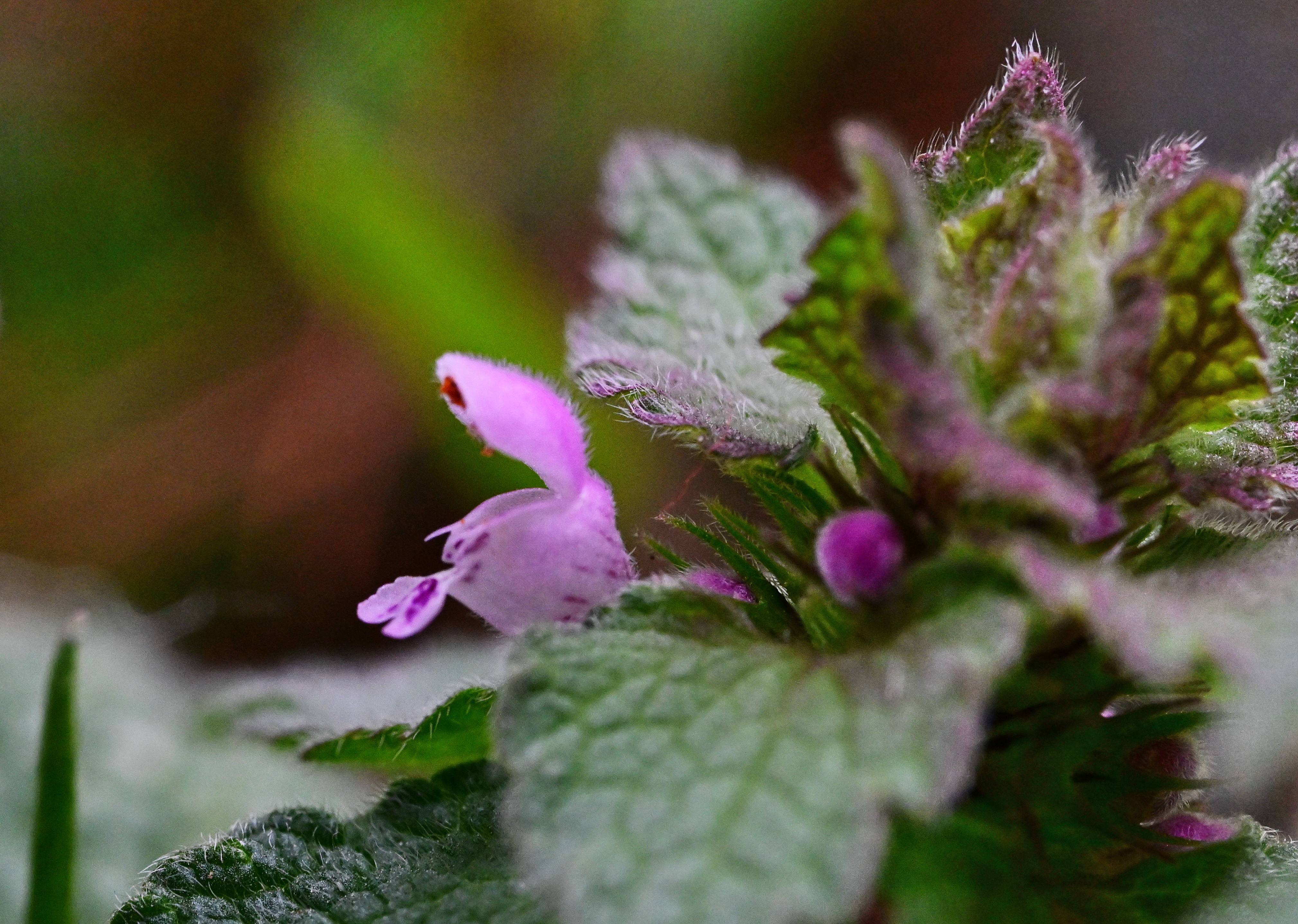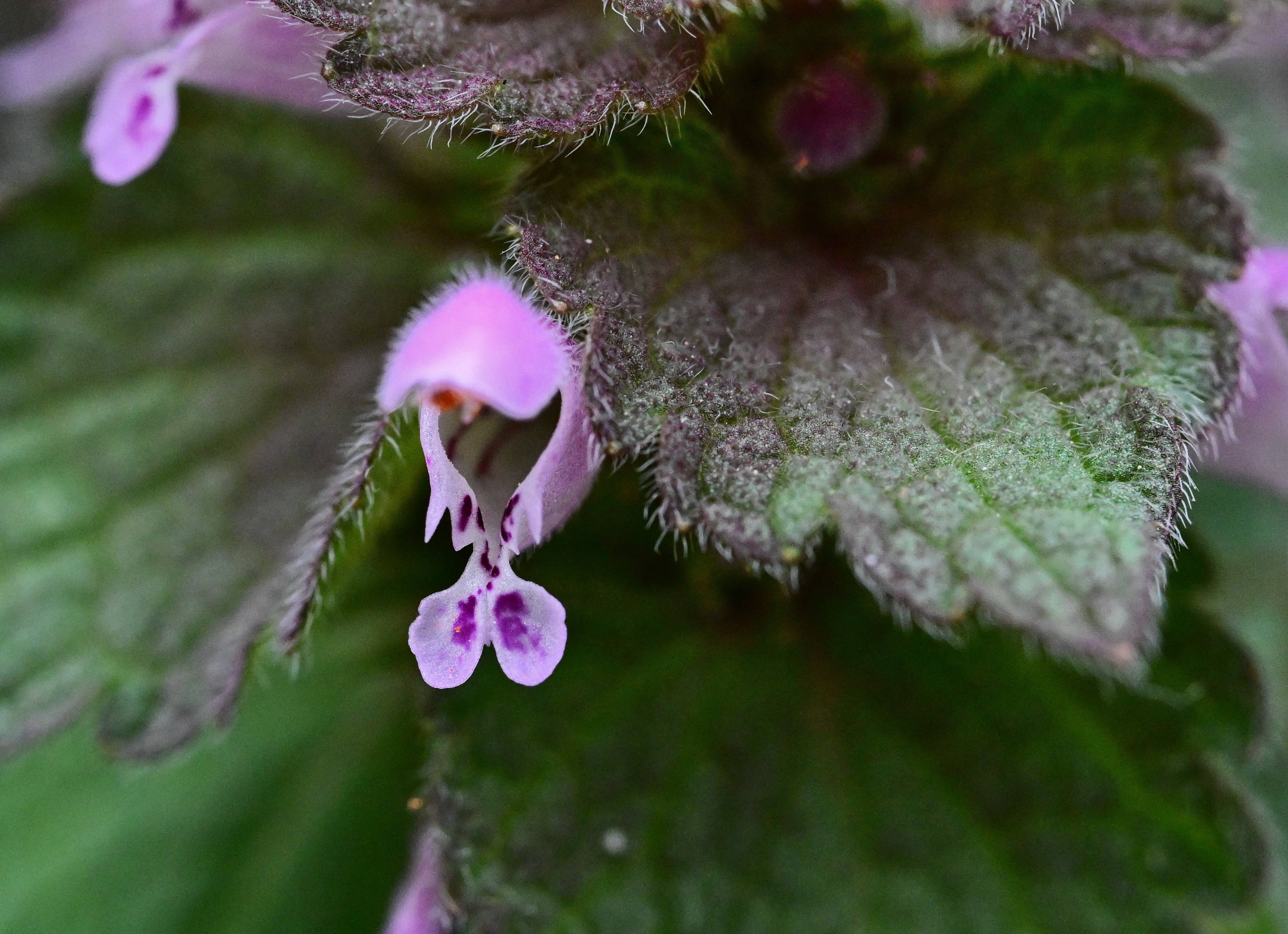 꽃부리는 입술 모양이며 연한 보라색으로 길이 1.0~1.5cm다.
